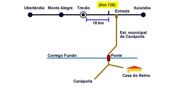 Após o trevão virar em direção a Ituiutaba na BR 365 e seguir até o Km 726.